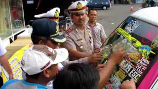 TIM GABUNGAN DARI DINAS PERHUBUNGAN DAN SATLANTAS POLRES SUBANG/ JAWA BARAT/ MELAKUKAN RAZIA KENDARAAN OVER DIMENSI ...
